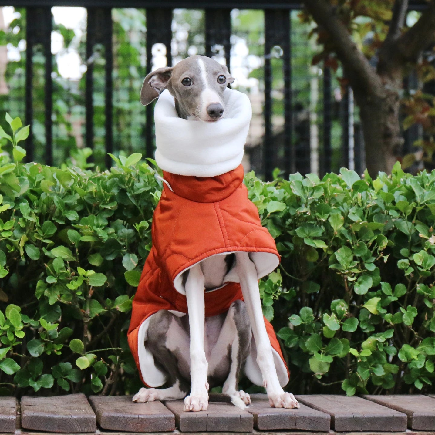 Prends soin de ton whippet, de ton lévrier ou de toute autre chien de taille moyenne avec ce manteau canin matelassé et équipé d'une attache ventrale ultra simple d'utilisation pour un enfilage en quelques secondes et sans stress pour toutou ! Le col fourré est montant jusqu'au sommet du crâne, idéal pour les périodes de grand froid. Une attache pour la laisse est prévue sur la partie dorsale afin de faciliter les promenades.
