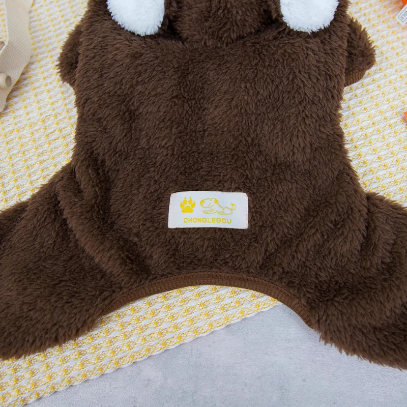 Donne à toutou la couche de chaleur et de cocooning dont il a besoin cet hiver avec ce Pyjama Combi pour chien avec une capuche à fausses oreilles. Parfait pour des séances photos et pour flaner au calme entre maitre et chien le dimanche après midi !