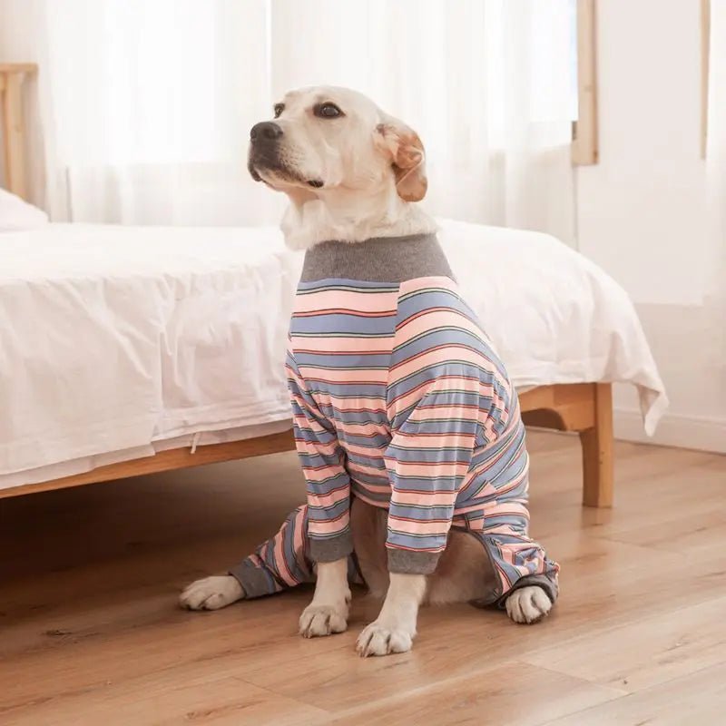 Laisse ton gros chien adopter le style pilou-pilou avec ce Pyjama à rayures élégant. Parfait pour un look casual à la maison comme pendant les sorties. La matière est en polyester très souple et résistante, la doublure ne colle pas aux poils pour assurer un confort maximum à ton chien.