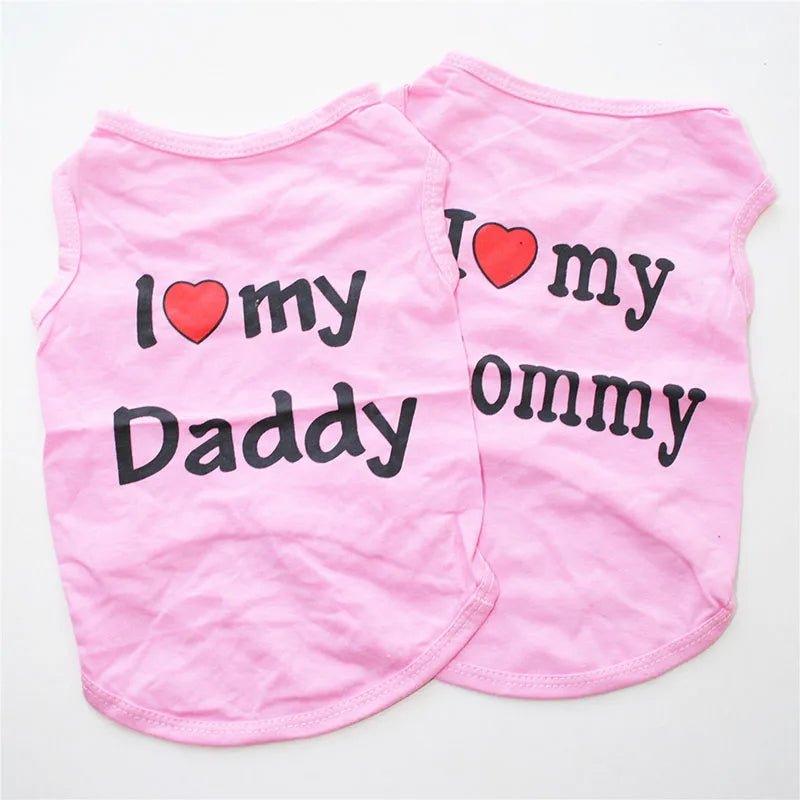 Craque pour un t-shirt plein d'amour avec ce modèle noir fait pour afficher ses sentiments ! Confectionné en coton doux et confortable, il est orné d'un logo "I Love my Mommy" ou "I Love my Daddy" imprimé au dos. Le vêtement félin parfait pour montrer son affection à ses humains préférés. Sans manches, ce t-shirt garantit une liberté de mouvement optimale tout en étant léger et agréable à porter. Idéal pour les moments câlins et les séances photos !