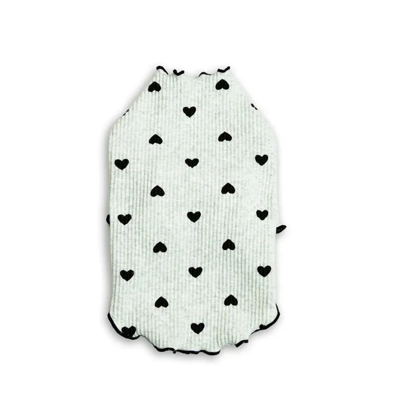 Enveloppe ton sphynx d'une touche de douceur avec ce t-shirt raffiné en coton texturé. Ce t-shirt blanc est délicatement orné de petits motifs cœurs noirs, ajoutant un charme romantique ta boule de poils. Les manches courtes volantées ainsi que le col ajoutent une note sophistiquée, idéal pour un look chic et adorable. Confortable et léger, il est parfait pour toutes les occasions, que ce soit pour un moment de détente ou une sortie élégante. Un choix incontournable pour les chats qui aiment se démarquer avec style et tendresse !