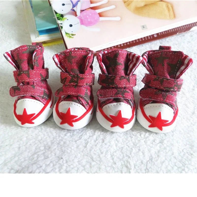 Offre un style unique à ton petit chien ou chiot avec ces chaussures inspirées des Converse. Conçues en jean et polyester, elles sont à la fois tendances et durables. L'attache velcro ajustable permet un enfilage facile, tandis que la semelle en caoutchouc antidérapante assure une marche sécurisée. La doublure non-collante garantit un confort optimal à chaque pas.